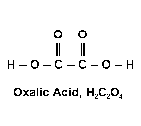 Oxalic acid is a strong acid of the composition HOOC-COOH, which crystallizes as the ortho-acid (HO)3 CC (OH)3 . It is sometimes also called “ethane diacid”. It occurs naturally in some vegetables (like rhubarb). The can also be produced by heating sodium formate and treating the resulting oxides with sulfuric acid. It can also be obtained by the action of nitric acid on sugar, or of strong alkalis on sawdust. The product is normally traded as colorless crystals with a melting point of 101.5?C, and can be dissolved in water or alcohol. Oxalic acid reduces iron compounds, and is therefore used in metal polishes, stain removers, and writing inks. When it absorbs oxygen, it is converted to the volatile carbon dioxide and to water, and it is used as a bleaching agent, in detergents, and as a mordant in dyeing processes.59
