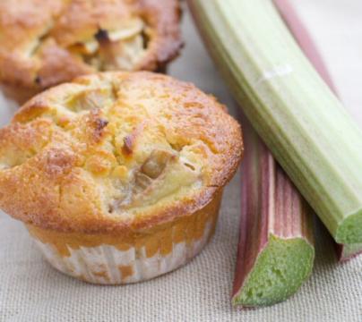 Preheat oven to 400 F. Spray bottoms of 12 muffin pan cups with vegetable cooking spray or line with paper baking cups. In medium-sized bowl beat egg whites with fork; stir in milk and oil. Add remaining ingredients except rhubarb, mixing just until flour is moistened (batter will be lumpy). Fold in rhubarb. Divide batter among prepared muffin cups, filling to top. Bake 20 to 25 minutes, or until golden brown. Immediately remove muffins from pan; cool on wire racks.